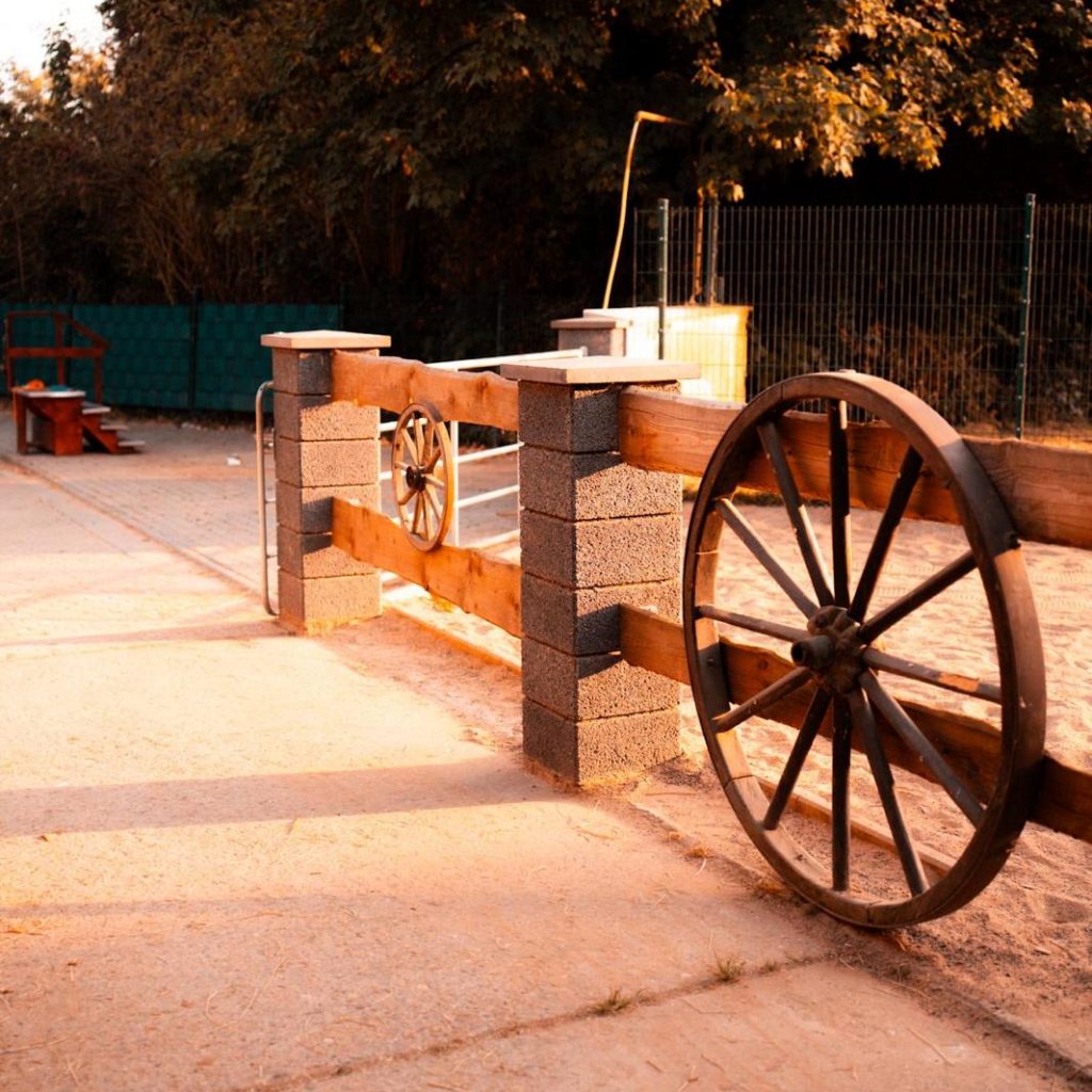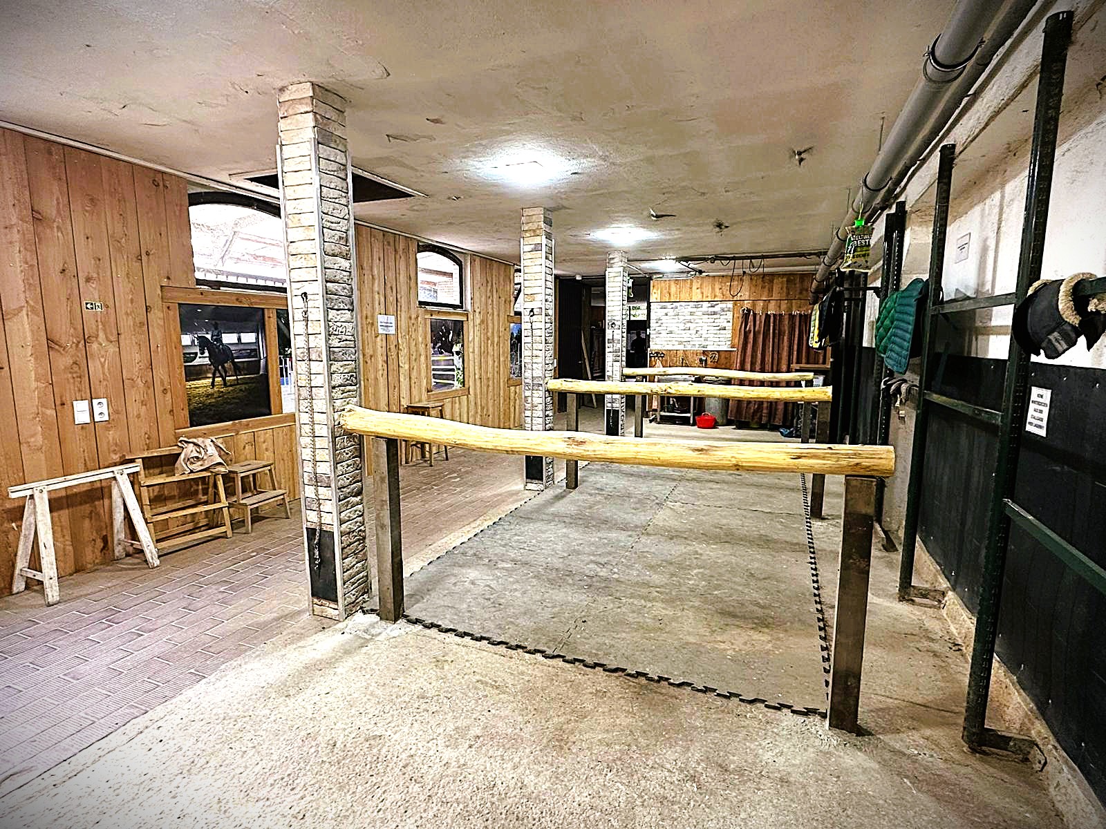 Auf der Anlage befinden sich mehrere großzügige Putzplätze, die für das Putzen, Satteln und Vorbereiten der Pferde genutzt werden.