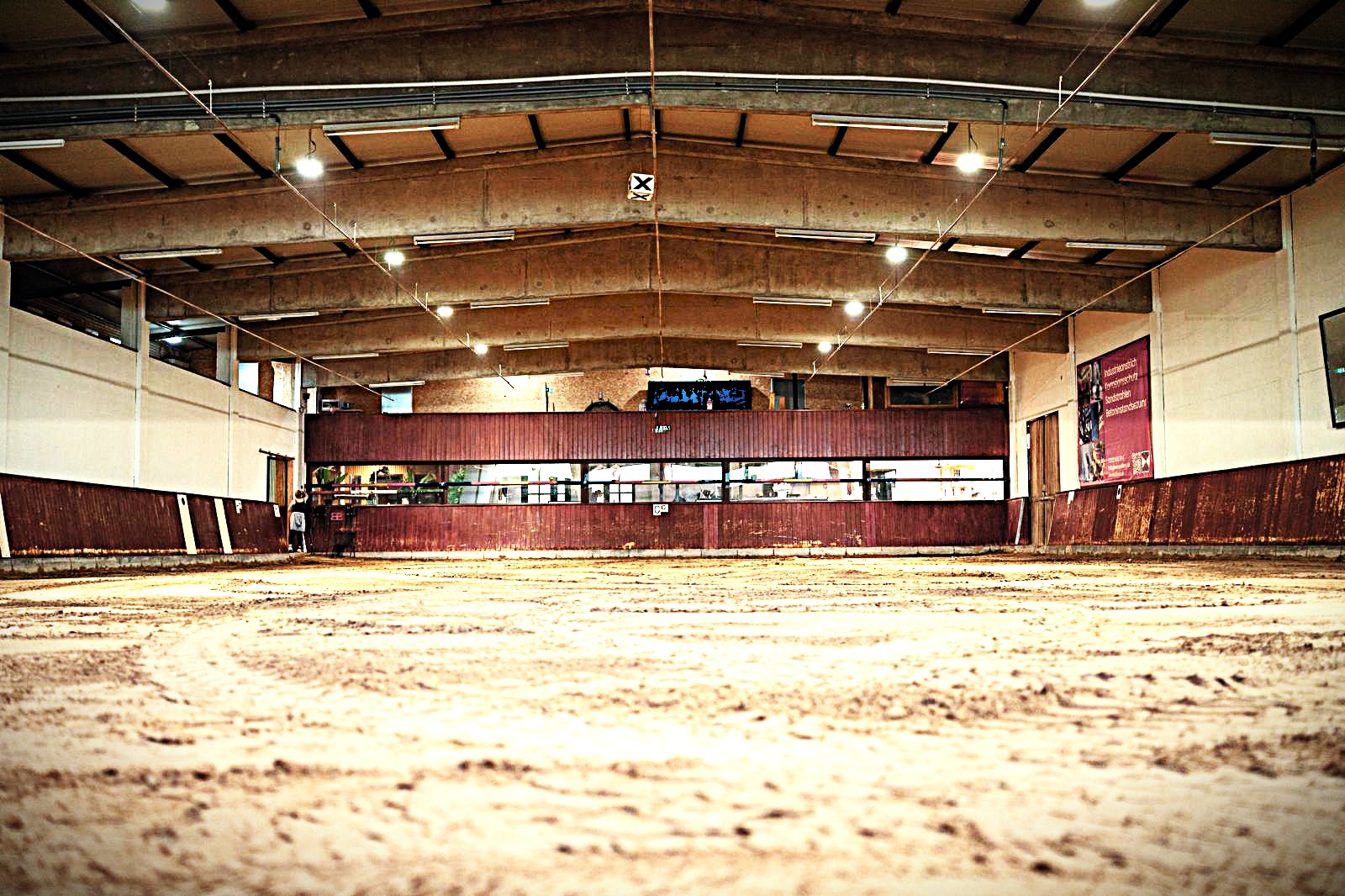 Die Reithalle umfasst eine Fläche von 800 m² (20 × 40 m) und ist mit einem Sandboden ausgestattet. Zwei Tribünen bieten Zuschauern und Begleitpersonen ausreichend Platz bei Unterricht, Lehrgängen und Veranstaltungen.