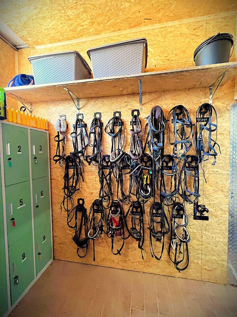 Hier werden Sättel, Trensen und weiteres Reitzubehör geordnet, trocken und sicher aufbewahrt.